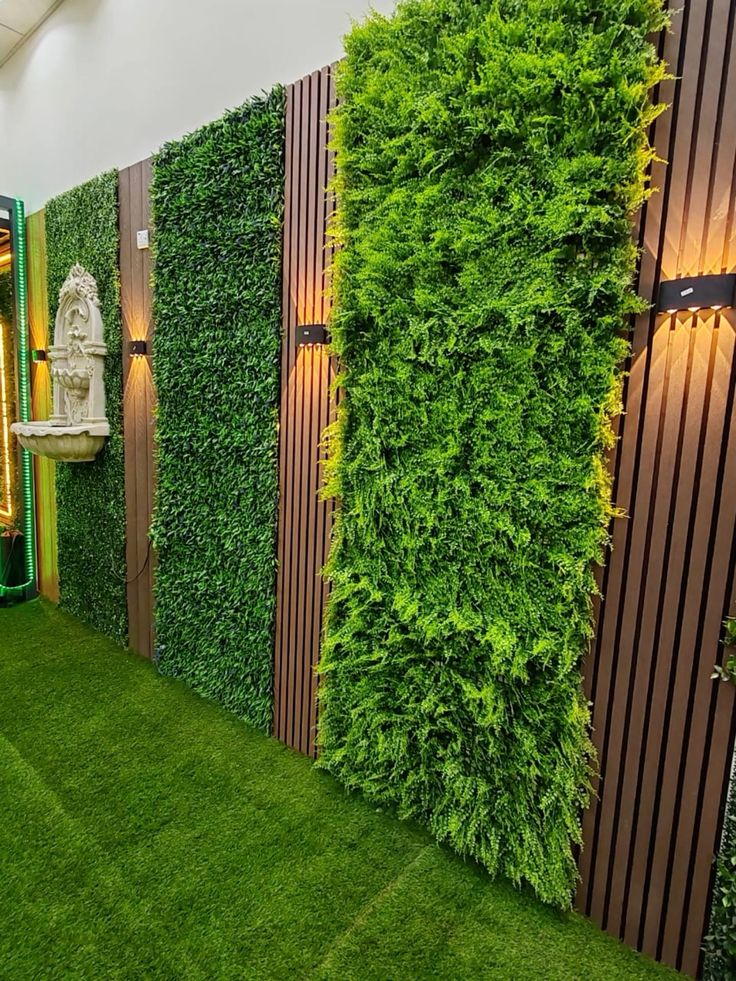 ولا يقتصر دور العشب الجداري على الجانب الجمالي فقط، بل يساهم أيضًا في تحسين الأجواء العامة للمكان، حيث يمنح إحساسًا بالراحة النفسية ويكسر حدة الجدران الصلبة. كما يمكن دمجه مع عناصر ديكور أخرى مثل الإضاءة المخفية، أو اللوحات، أو الشعارات، ليصبح عنصرًا مميزًا يعكس هوية المكان، خاصة في المشاريع التجارية والمكاتب الحديثة.