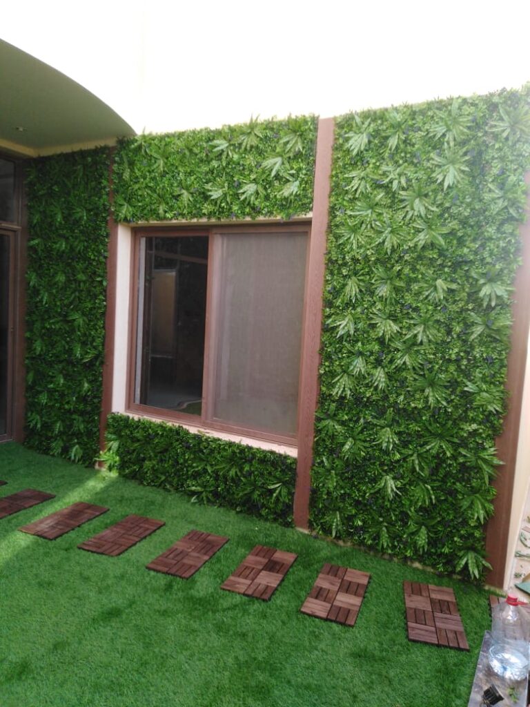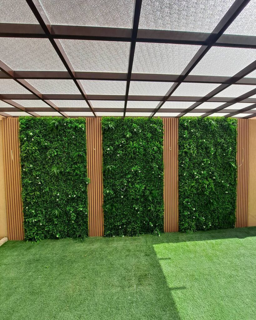 يتميّز العشب الجداري الذي توفره مؤسسة حدائق الشرقية بخاماته عالية الجودة، المصنوعة من مواد متينة مقاومة للعوامل الجوية والرطوبة وأشعة الشمس، مما يجعله مناسبًا للاستخدام الخارجي والداخلي على حد سواء. كما يتم تصميمه بطريقة تحاكي شكل العشب الطبيعي بدقة، مع ألوان خضراء متدرجة تمنح إحساسًا بالحيوية والانتعاش يدوم لفترات طويلة دون بهتان.
